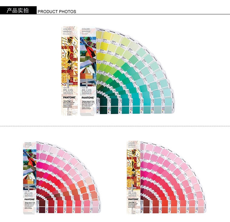 橋接PANTONE專色色彩,以供四色印刷或網頁設計使用。購買兩冊套裝的Plus係統色彩橋梁[Plus SERIES COLOR BRIDGE](光麵銅版紙和膠版紙)指南可節省更多金錢。色彩橋梁以並排比較格式為所有PANTONE專色色彩(包含644種新專色)提供四色色彩模擬效果。色彩橋梁是一款非常有價值的多功能色彩參考工具,它可用於選擇和指定PANTONE專色,進而確定以CMYK複製PANTONE色彩時的顯示效果,或在監視器和網頁上創建更佳的PANTONE色彩顯示效果。提供HTML和sRGB值,以便在媒體中應用色彩選擇。包含色彩指標、照明評估工具、數碼影像色彩校正工具和設計軟件
