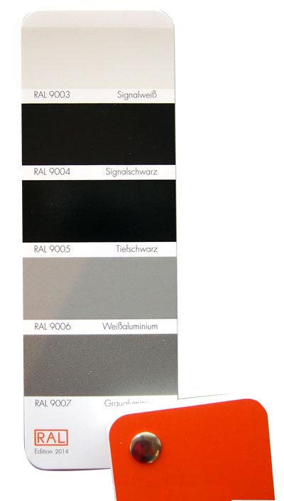 四位數字式RAL色卡70年來一直是選擇顏色的標準。在剛開始的時候隻有40種不同的顏色到現在為止已發展為213 種。無光澤的顏色明暗基本標準是RAL840-HR,有光澤的顏色明暗基 本標準是RAL841-GL。這兩種顏色樣本都包含了 重要研究院用於滿足長期大範圍的工業需求的顏色樣本,注冊的應用於設計的顏色樣本,他們也同樣包含符合DIA標準的安全色及信號色。