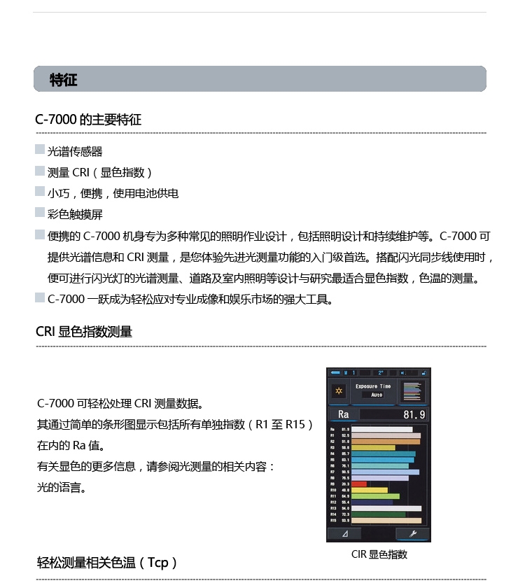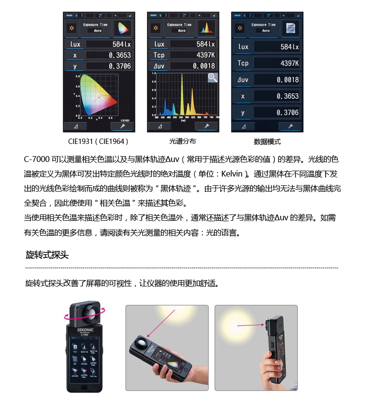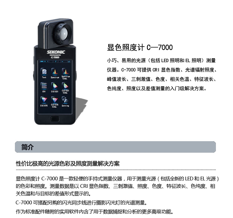顯色照度計 C-7000小巧、易用的光源(包括LED照明和EL照明)測量儀器。